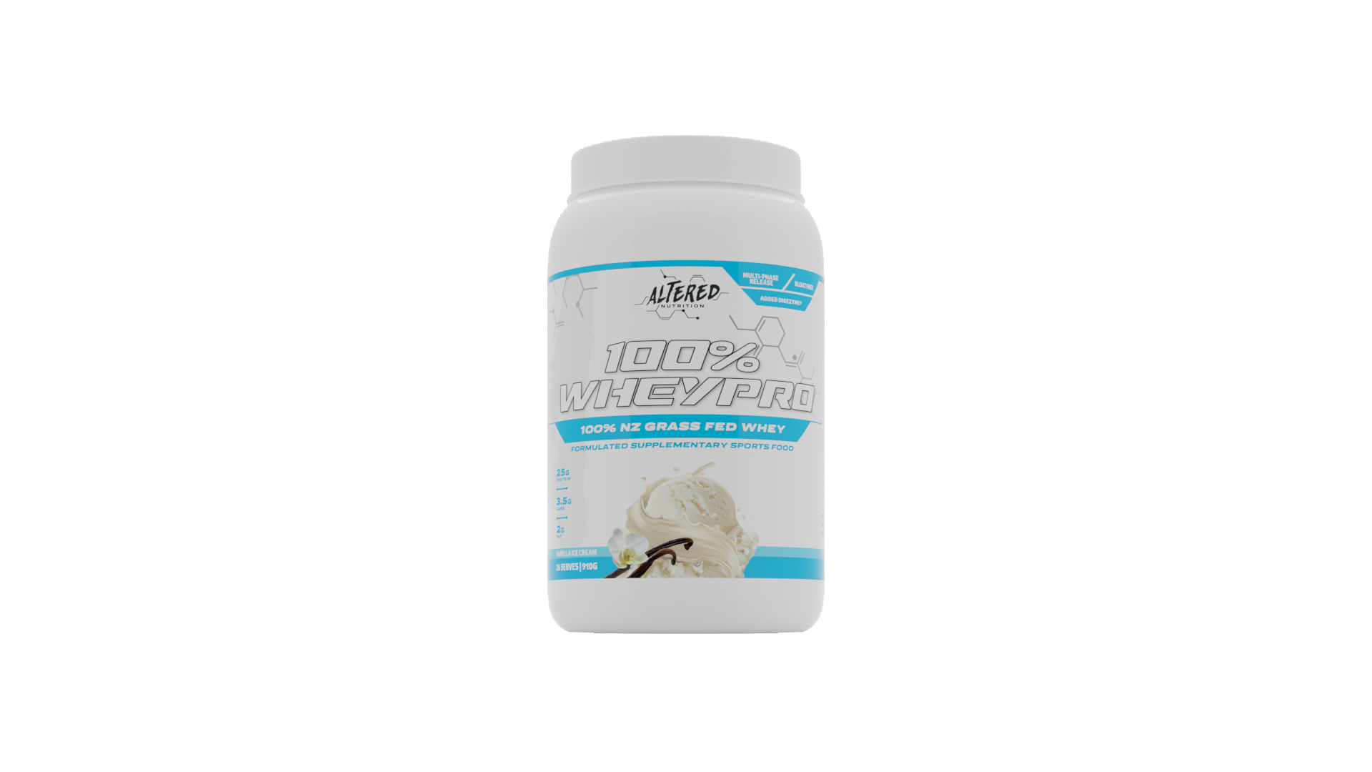 100% WheyPRO is a premium grass fed whey blend, sourced solely from New Zealand pastures and made and manufactured in Australia.